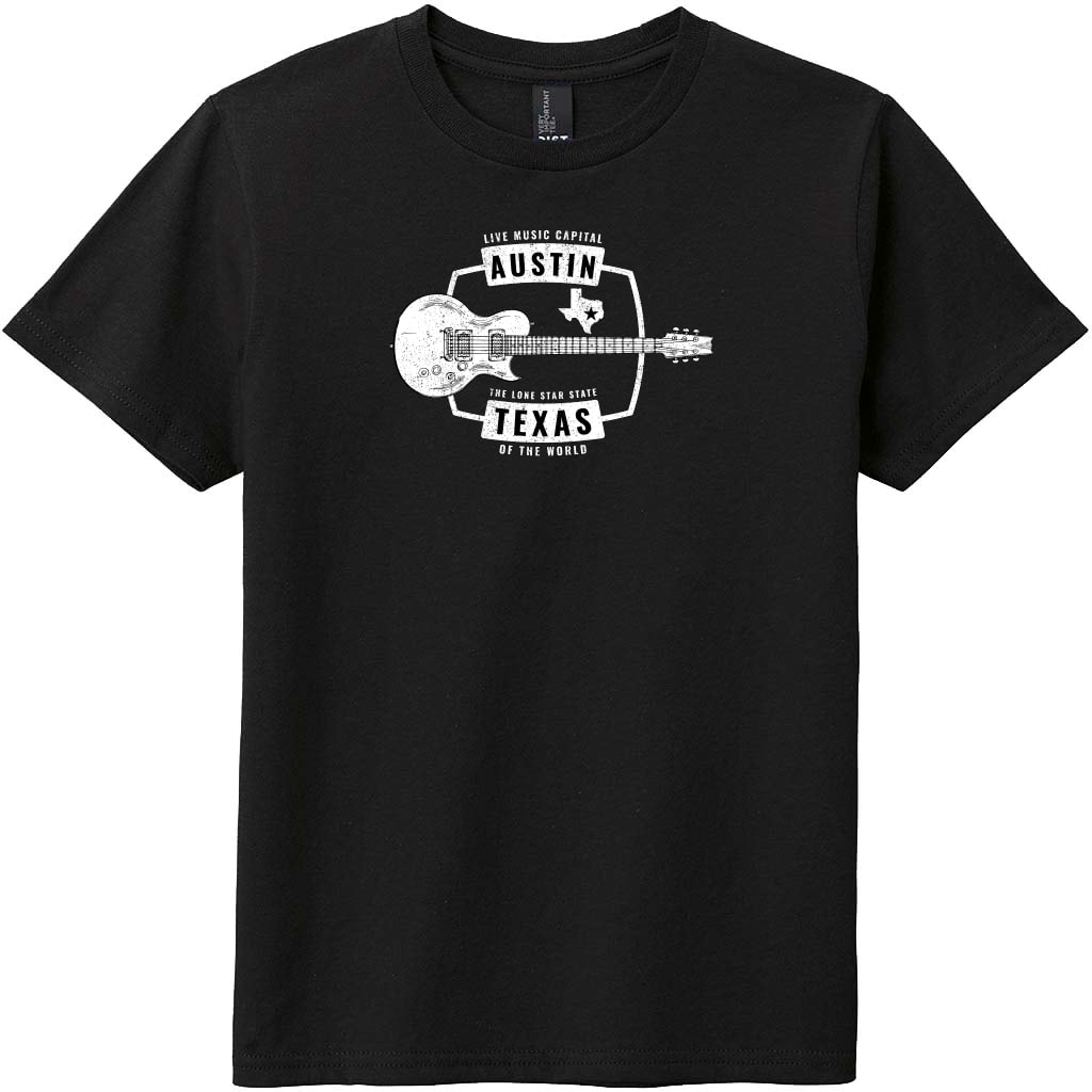 This Austin Texas Live Music Capital Guitar Youth T-Shirt is printed to a high quality ringspun cotton youth t shirt for a very soft feel with tight stitching. Designs printed to these premium cotton youth t shirts come out with nice bright prints and detail. All Youth T Shirts are printed and shipped from U.S. Custom Tees.