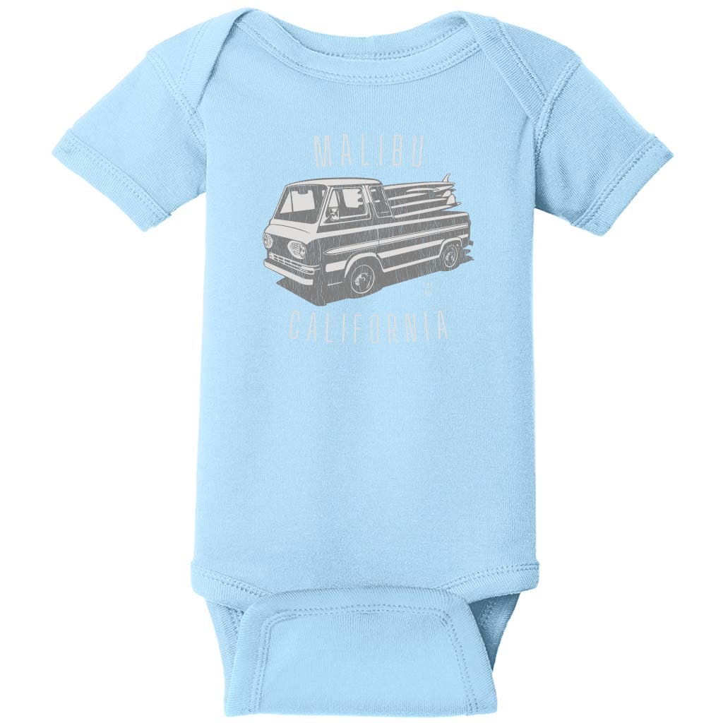 This Malibu California Surf Baby One Piece is printed to a high quality ringspun cotton baby one piece snap suit with three snaps at the bottom and lap shoulders for easy changing. Designs printed to these premium infant one piece snap suits come out with nice bright prints so you get a cute baby one piece. These baby one piece snap suits are printed and shipped from U.S. Custom Tees.